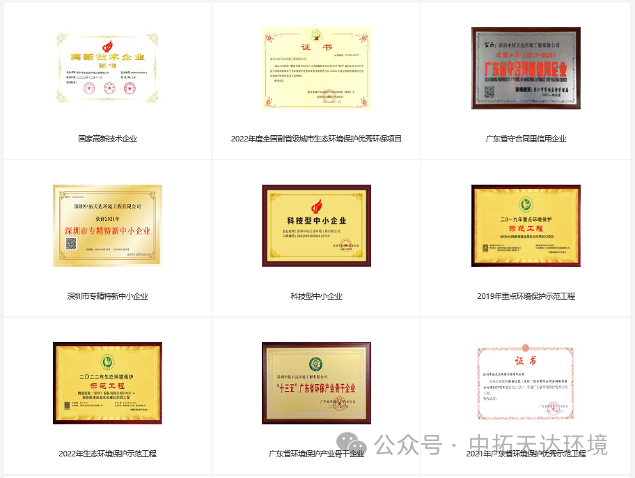 公司先后獲得發明專利4項,入選國家級重點環境保護示范工程2項、省級環境保護優秀示范工程2項、2023年度全國副省級城市生態環境保護優秀環保項目案例、優秀產品/裝備2項、深圳市環境保護新技術2項,完成了50余個廢水回用與零排放項目,成為眾多行業龍頭企業的供應商。